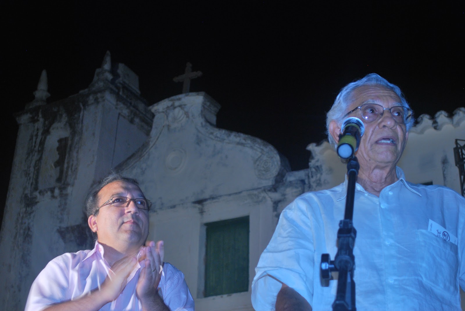 O coordenador da Mostra Laercio Filho com o cineasta Vladimir Carvalho discutindo a importância da 3ª Mostra Acauã do Audiovisual Paraibano.