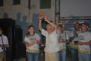 O diretor do filme Lampião e o cimento Diassis Pires recebendo o "Troféu São Saruê" como um dos realizadores paraibanos.