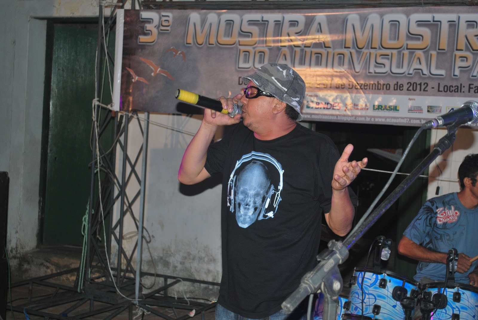 Saul Soares vocalista do grupo musical Escaravelhos em apresentação cultural na 3ª Mostra Acauã do Audiovisual Paraibano.